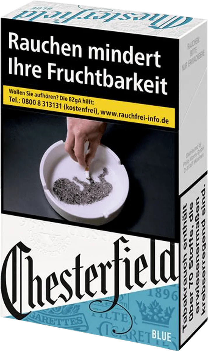 Chesterfield, eine traditionsreiche Marke mit einer tiefverwurzelten Geschichte, präsentiert stolz die Chesterfield Blue - eine Zigarettenvariante, die durch ihre fein ausbalancierte Komposition einen mild-würzigen Rauchgenuss mit niedrigen Werten bietet. Dieses besondere Angebot spricht sowohl erfahrene Raucher als auch Neueinsteiger an, die auf der Suche nach einer harmonischen Raucherfahrung sind. Im Vergleich zur Chesterfield Original zeichnet sich die Chesterfield Blue durch ihre mildere Charakteristik aus, wobei ihr einzigartiges Aroma, das eine gelungene Mischung aus Milde und Würze verkörpert, ein außergewöhnliches Raucherlebnis verspricht.
