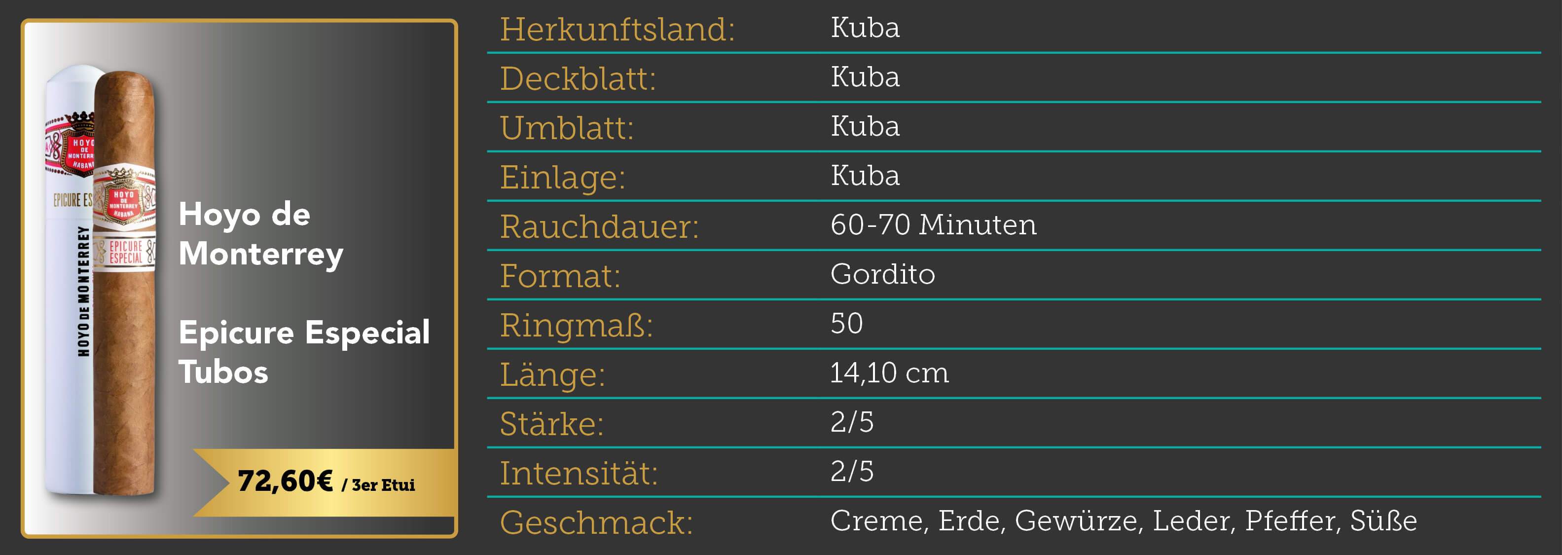 4. Hoyo de Monterrey Epicure Especial Tubos (3er Etui)