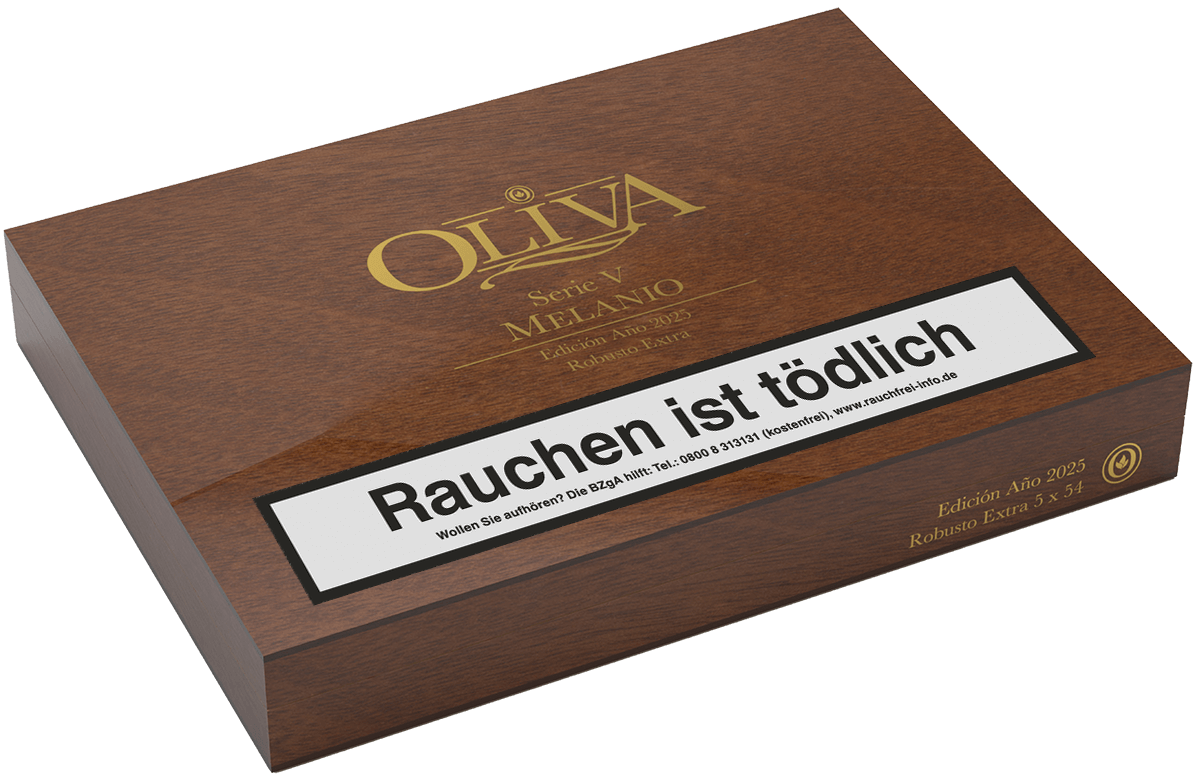 Oliva Serie V Melanio Edición Año 2025 Robusto Extra mit Ecuador Sumatra-Deckblatt, nicaraguanischem Umblatt und Einlage für cremigen, balancierten Rauch.