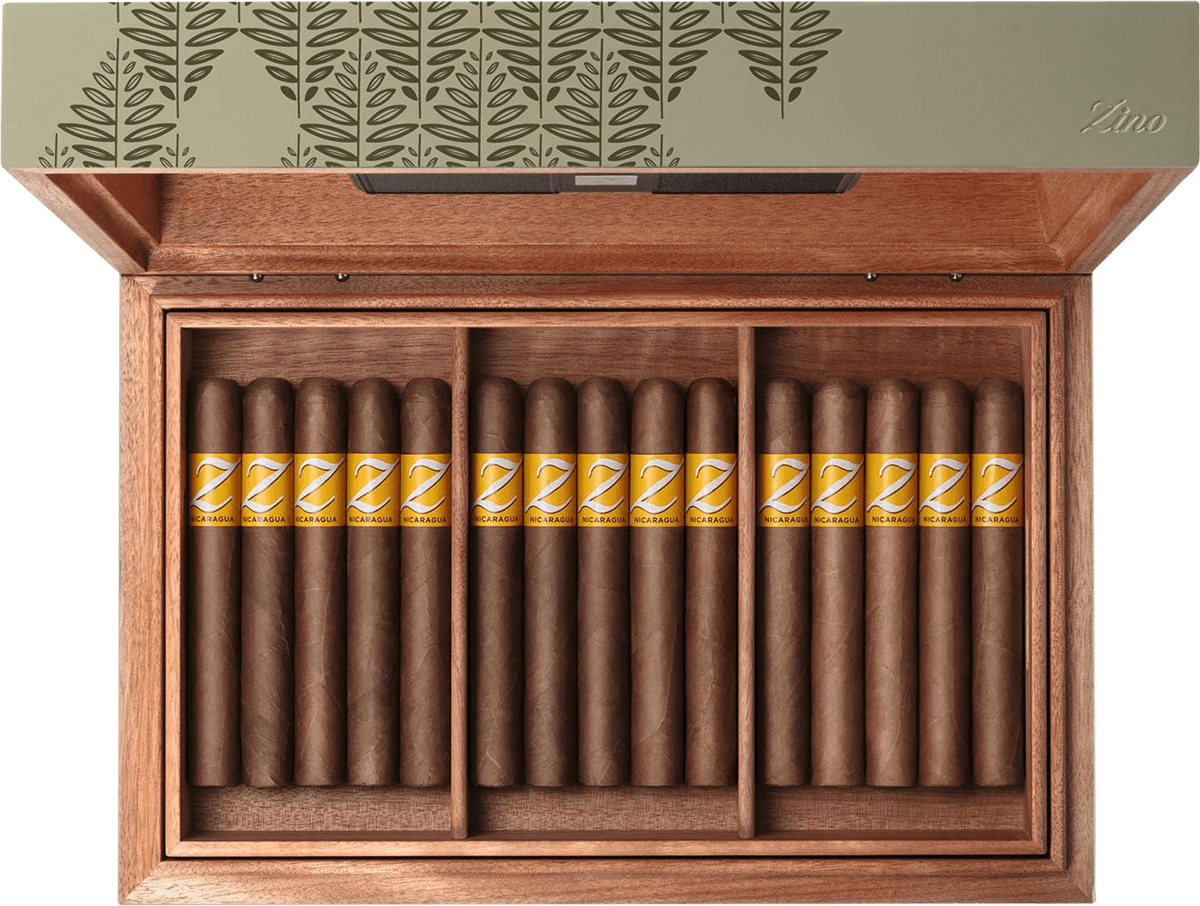 Die Zino Z-Collection Green ist die erste exklusive Limited Release der neuen Kollektion und verbindet höchste Qualität mit innovativem Design und durchdachter Funktionalität. Sie bietet Zigarrenliebhabern alles, was für ein gelungenes Raucherlebnis wichtig ist - von der sorgfältigen Auswahl und Lagerung bis zum stilvollen Genuss. Elegant, farbenfroh und unverkennbar repräsentiert sie die Zino-Philosophie von Qualität und Raffinesse.