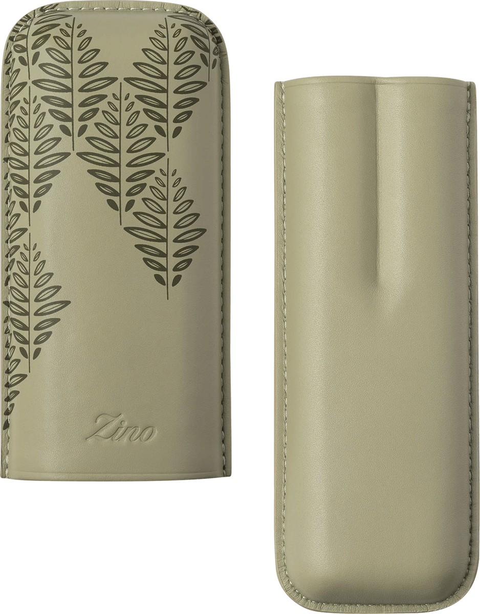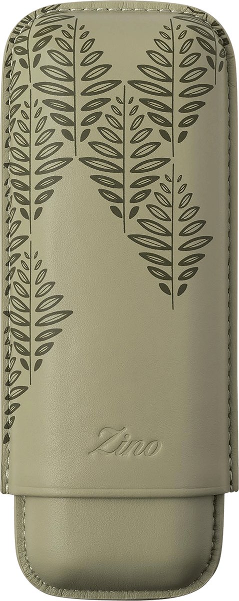 Sorgfältig gearbeitete, farblich abgestimmte Nähte stehen für hohe Verarbeitungsqualität. Der obere Teil ist mit einem stilvollen Blatt-Design aus dunkelgrünen Tabakblättern verziert und macht das Etui zu einem besonderen Blickfang. Dank der einstellbaren Länge passt sich das Zigarrenetui flexibel an verschiedene Formate an und bietet durch seine ergonomische Form hohen Tragekomfort. Das eingeprägte Zino Logo auf der Vorderseite rundet das Design ab. Das Modell ZS2 bietet Platz für zwei Zigarren bis zu einem Ringmaß von RG 60.